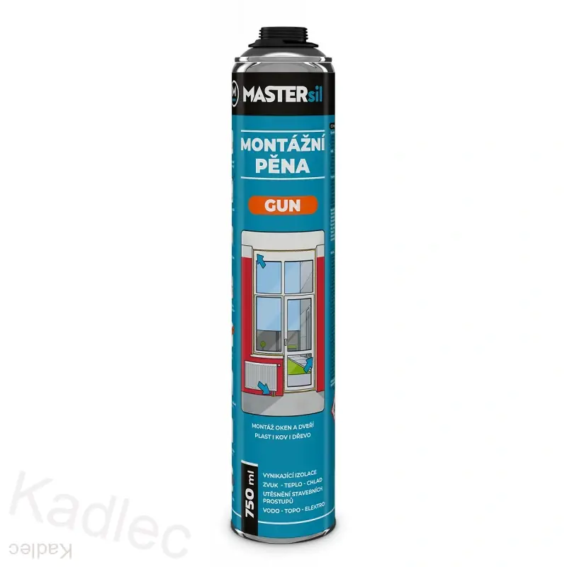 MASTERsil® – Montážní pěna je jednosložková polyuretanová pěnová hmota. Působením vzdušné vlhkosti a teploty expanduje až na 50násobek svého původního objemu. Pěna odolává plísním, vodě, neodolává UV záření, dá se přetírat.