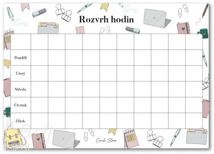 Rozvrh hodin A5 mix motivů8 Kč/ ks7 Kč bez DPH
